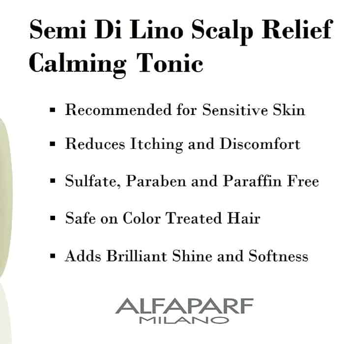 Alfaparf Semi Di Lino Scalp Relief Calming Tonic is a revolutionary new product: a soothing fluid for sensitive scalps that relieves itching and discomfort. And its leave in formula makes it so easy to use!
