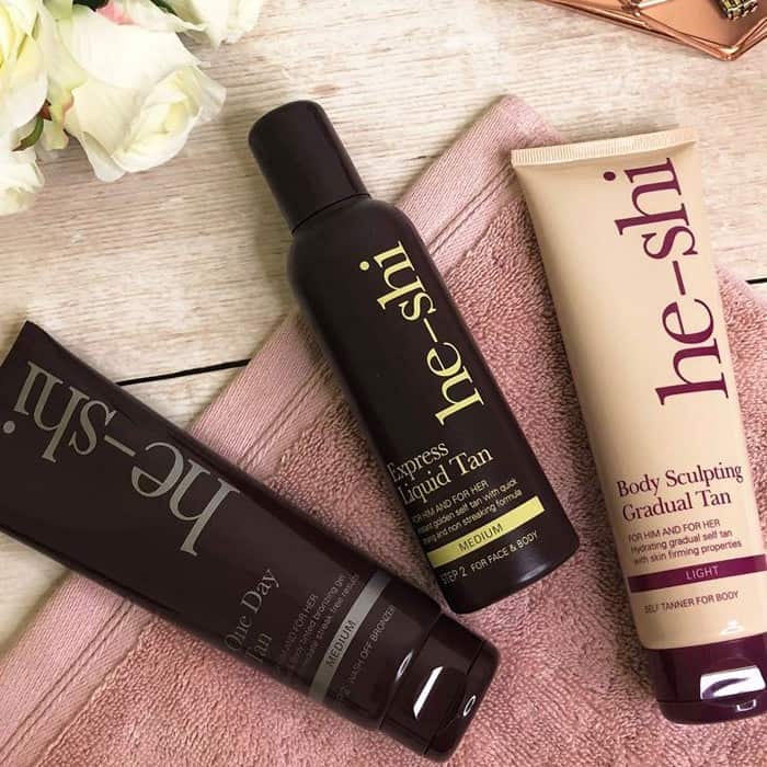 he-shi products are vegan and cruelty free. Formulated without alcohol, parabens, palm oil, mineral oil and sulphates. Products include the highest grade of natural ingredients possible to give a natural looking flawless tan.;