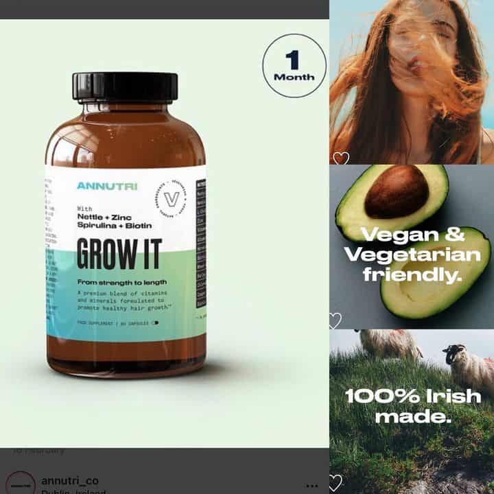 One bottle contains a month’s supply (60 capsules) to keep your hair growing form strength to length, all month long. It’s vegan and vegetarian friendly and full of amazing natural ingredients. It doesn’t contain any fillers and it’s made right here in Ireland.